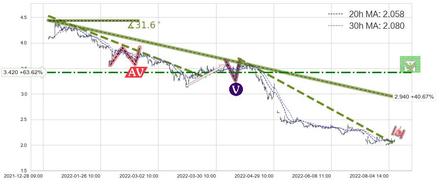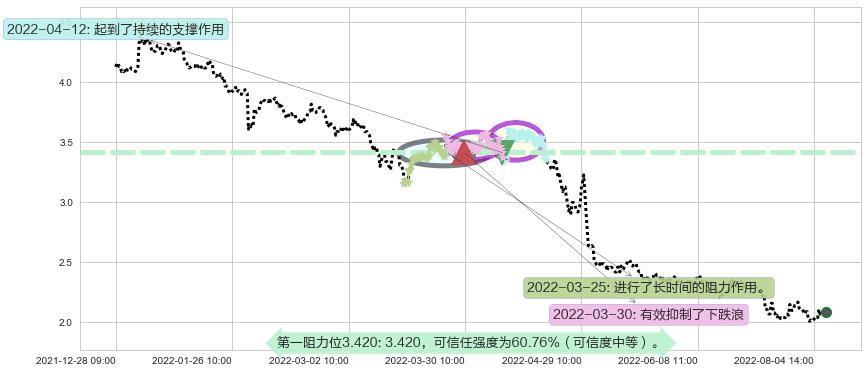 ♘ 阻力价格位3.420,可信任强度60.76%,距离最后交易2022-08-12 14:00形成的收盘价格2.090相差 +63.62%