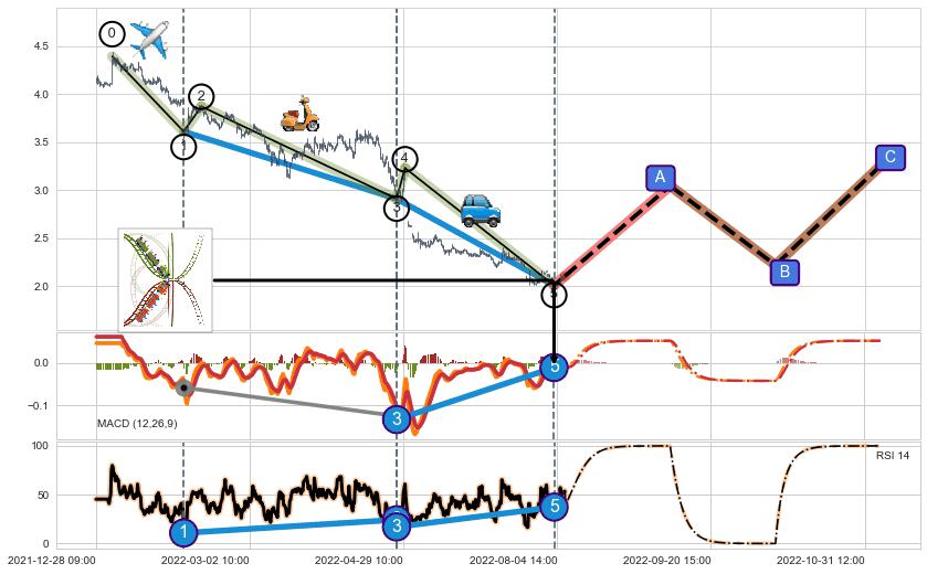 ➢ 第五驱动浪【动能】:🚙 83.45%, 是3个下跌浪中【中等】动能
