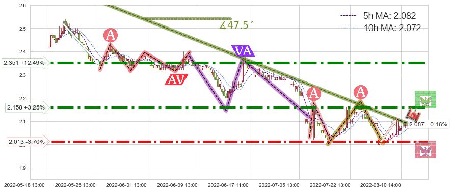 ♘ 阻力价格位2.351,可信任强度94.49%,距离最后交易2022-08-12 14:00形成的收盘价格2.090相差 +12.49%
