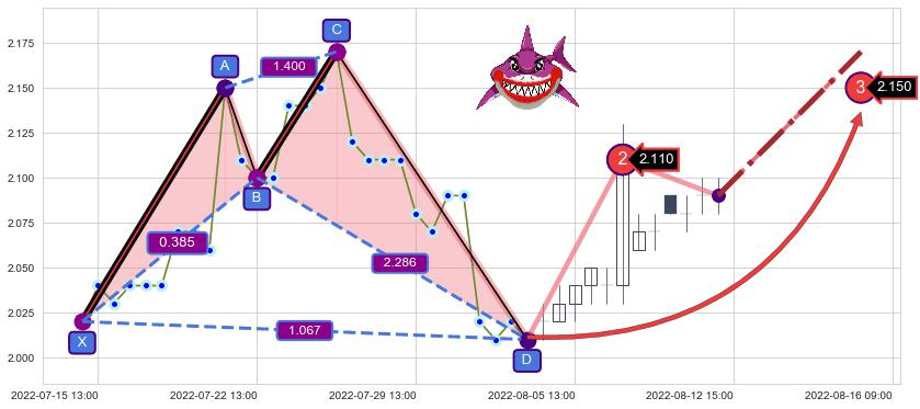 ➣ 已完成【鲨鱼】形态起点X: 07-14:14, 终点D: 08-03:14, 共29交易小时