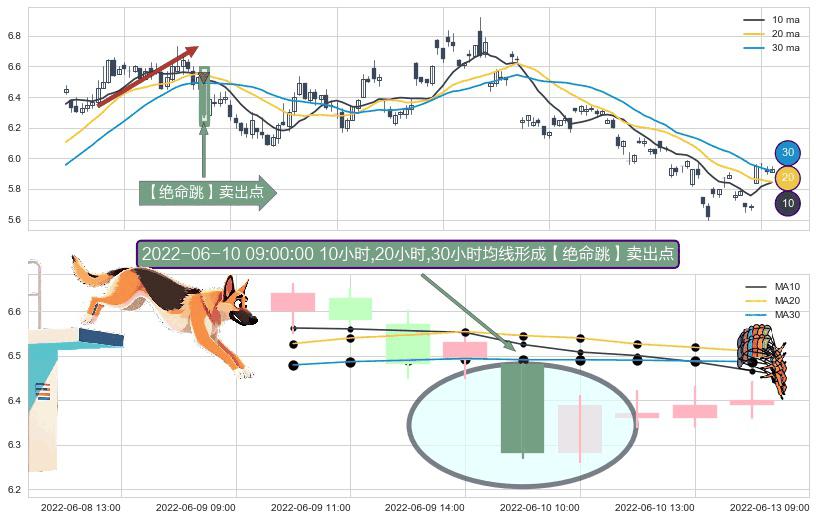 ⚀ 2022-06-10 09:00:00小时显现 10小时-20小时-30小时均线 【绝命跳】卖出点 看空信号,后市看跌,卖出