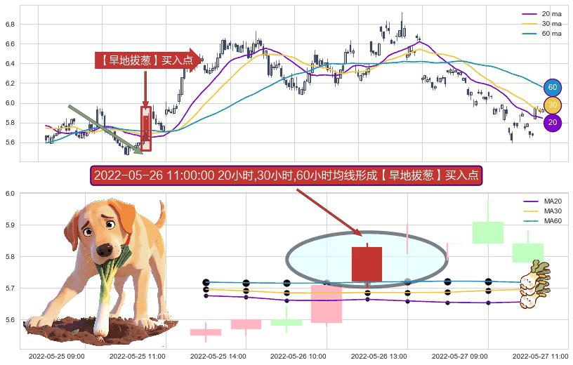 ⚀ 2022-05-26 11:00:00小时显现 20小时-30小时-60小时均线 【旱地拔葱】买入点 看多信号,后市看涨,买入