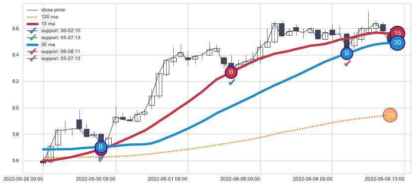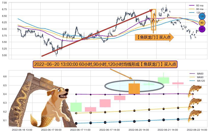 ⚀ 2022-06-20 13:00:00小时显现 60小时-90小时-120小时均线 【鱼跃龙门】买入点 看多信号,后市看涨,买入