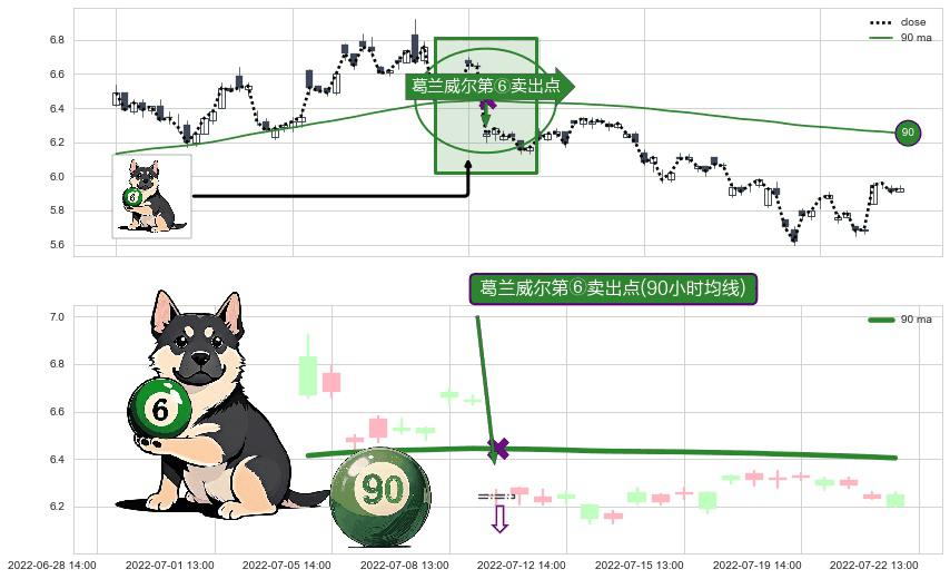 ⚀ 2022-07-11 13:00:00-小时显现 葛兰威尔均线 90小时均线 第⑥卖出点 走势反转见顶信号,后市看跌,卖出信号