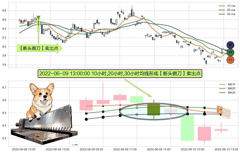 ⚀ 2022-06-09 13:00:00小时显现 10小时-20小时-30小时均线 【断头铡刀】卖出点 看空信号,后市看跌,卖出