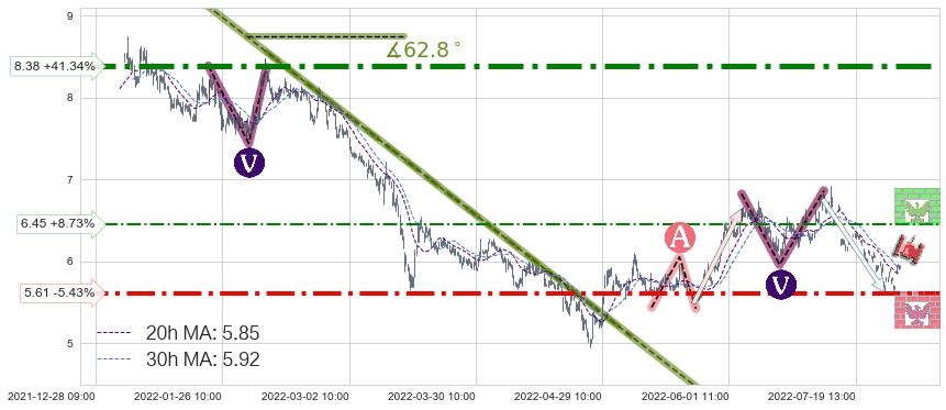 ♞ 20小时均线:5.85,30小时均线:5.92→ 快线<慢线