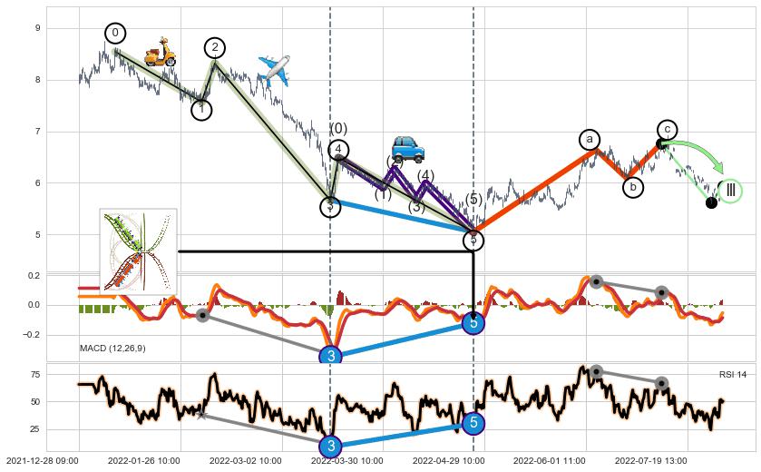 ➢ 第五驱动浪【动能】:🚙 33.67%, 是3个下跌浪中【中等】动能