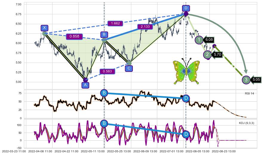 ➣ 已完成【蝴蝶】形态起点X: 04-01:11, 终点D: 07-05:14, 共271交易小时