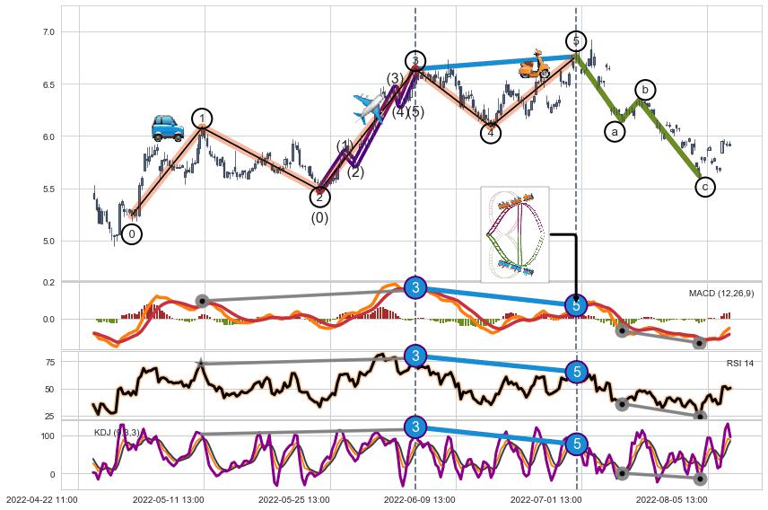 ➢ 1,3,5驱动浪MACD, RSI, KDJ走势都出现【常规背离】反转信号增强