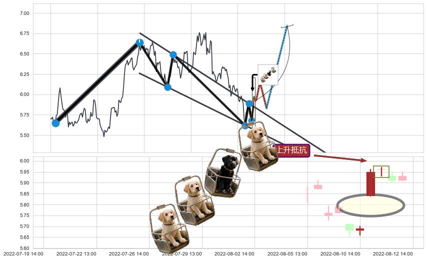 ♘ 阻力价格位6.11,可信任强度67.91%,距离最后交易2022-08-12 14:00形成的收盘价格5.93相差 +3.00%