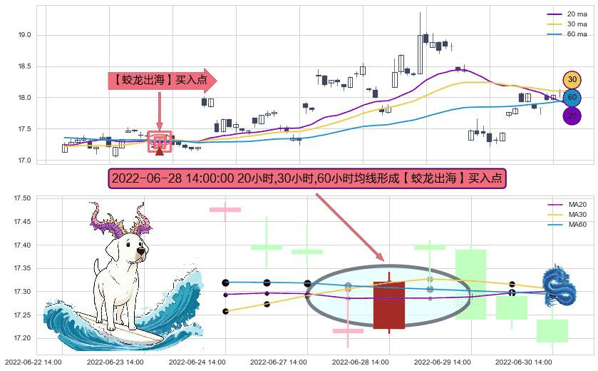 ⚀ 2022-06-28 14:00:00小时显现 20小时-30小时-60小时均线 【蛟龙出海】买入点 看多信号,后市看涨,买入