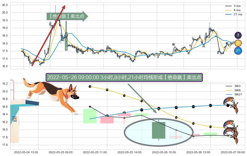 ⚀ 2022-05-26 09:00:00小时显现 3小时-8小时-21小时均线 【绝命跳】卖出点 看空信号,后市看跌,卖出