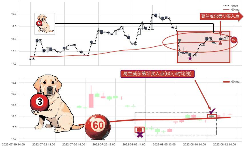 ⚀ 2022-08-11 13:00:00-小时显现 葛兰威尔均线 60小时均线 第③买入点 上升趋势的中继信号,后市看涨,买进信号
