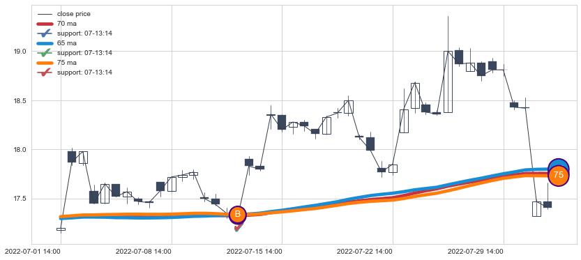 ⚂ 2022-06-28 14:00:00小时突然冒出一根大阳线,一下子顶穿三条均线且收盘价收在各条均线之上