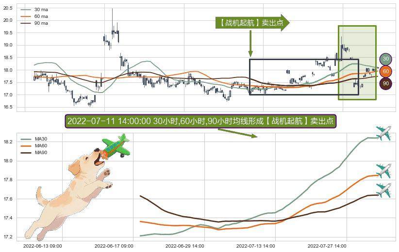 ⚀ 2022-06-17 11:00:00小时-2022-08-03 13:00:00小时显现 30小时-60小时-90小时均线 【战机起航】卖出点 看空信号,后市看跌,卖出