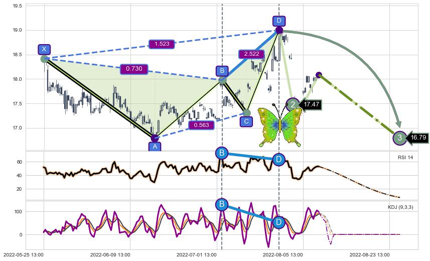 ➣ 已完成【蝴蝶】形态起点X: 05-25:13, 终点D: 07-27:13, 共137交易小时
