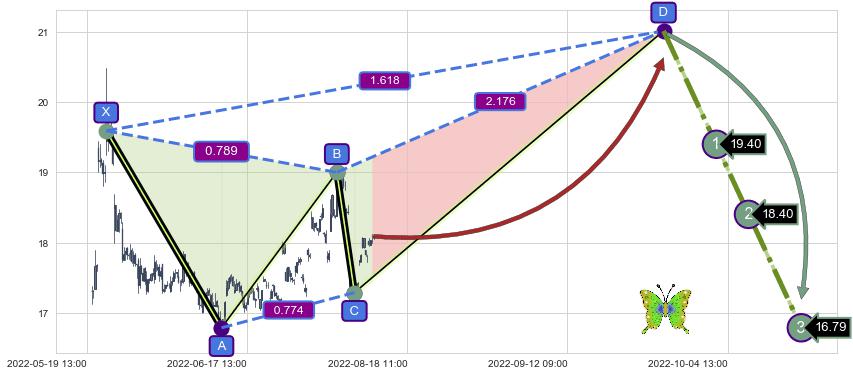 ➢ 距离预测D点位置有足够的上涨空间, 与看跌【蝴蝶】形态相反,实际方向【看涨】