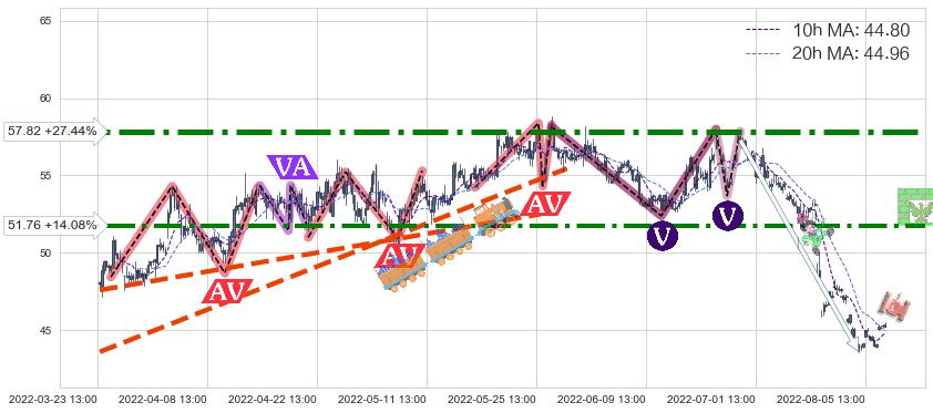 ♘ 阻力价格位51.76,可信任强度81.95%,距离最后交易2022-08-12 14:00形成的收盘价格45.37相差 +14.08%