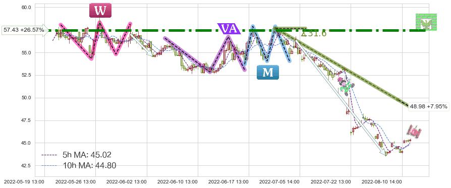 ➣ 预测:2022-08-22 11:00,【继续下探】稳定目前下跌趋势的前提下,预测价格:41.34