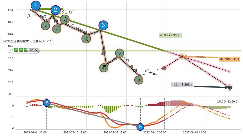 ➢ 预测:2022-08-16 11:00,【小幅反弹】稳定目前下跌趋势的前提下,预测价格:47.79