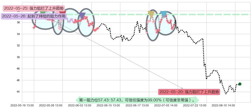 ♘ 阻力价格位57.43,可信任强度99.00%,距离最后交易2022-08-12 14:00形成的收盘价格45.37相差 +26.57%