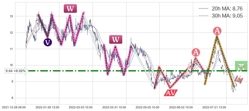 ♞ 20小时均线:8.76,30小时均线:9.05→ 快线<慢线
