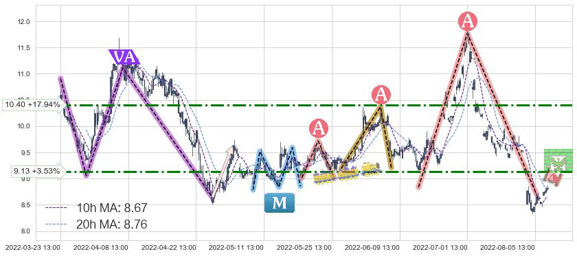 ♞ 10小时均线:8.67,20小时均线:8.76→ 快线<慢线