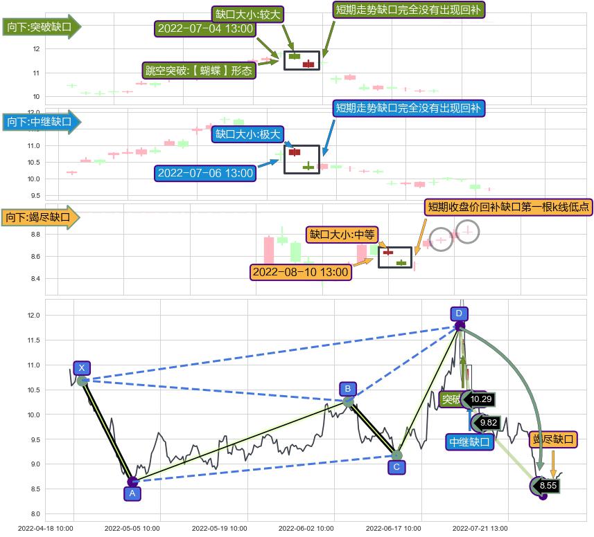 ➢ 2022-08-10 13:00形成:向下跳空【竭尽】缺口