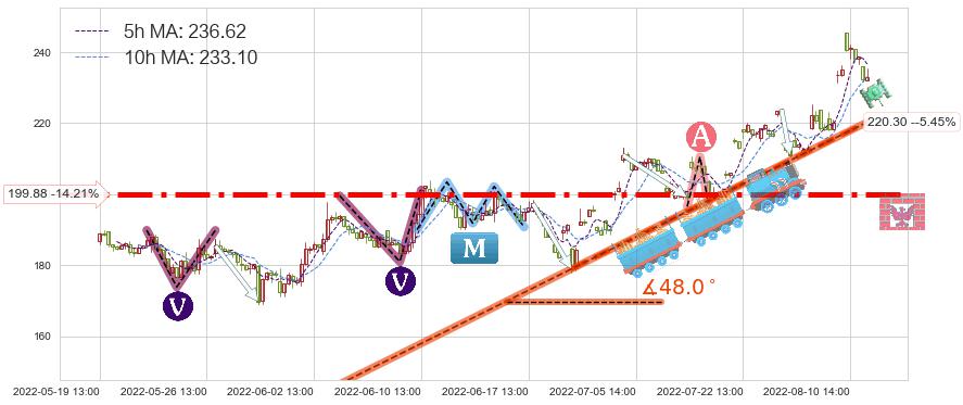 ➢ 预测:2022-08-16 11:00,【小幅回撤】稳定目前上涨趋势的前提下,预测价格:225.70