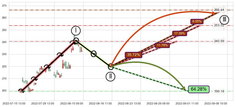 ➢ 循环浪继续向上【最低】位置(08-29:14, 240.59),匹配聚类样本比例32.98%, 可能性概率11.78%