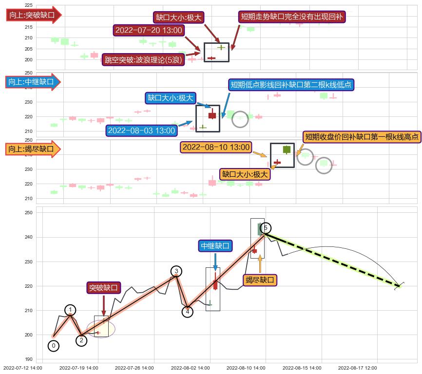 ➢ 2022-08-10 13:00形成:向上跳空【竭尽】缺口