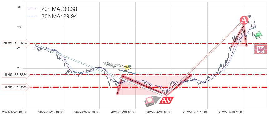 ♘ 支撑价格位18.45,可信任强度50.21%,距离最后交易2022-08-12 14:00形成的收盘价格29.20相差 -36.83%