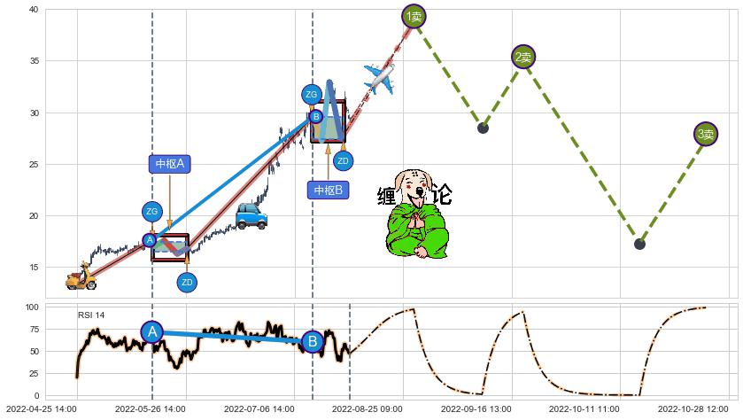 ➣ 【未完成】缠论 起点:04-25:14, 完成第1中枢A,完成第2中枢B,到达08-12:14