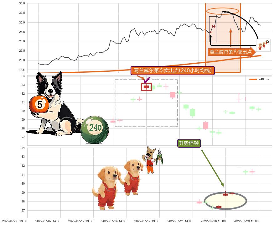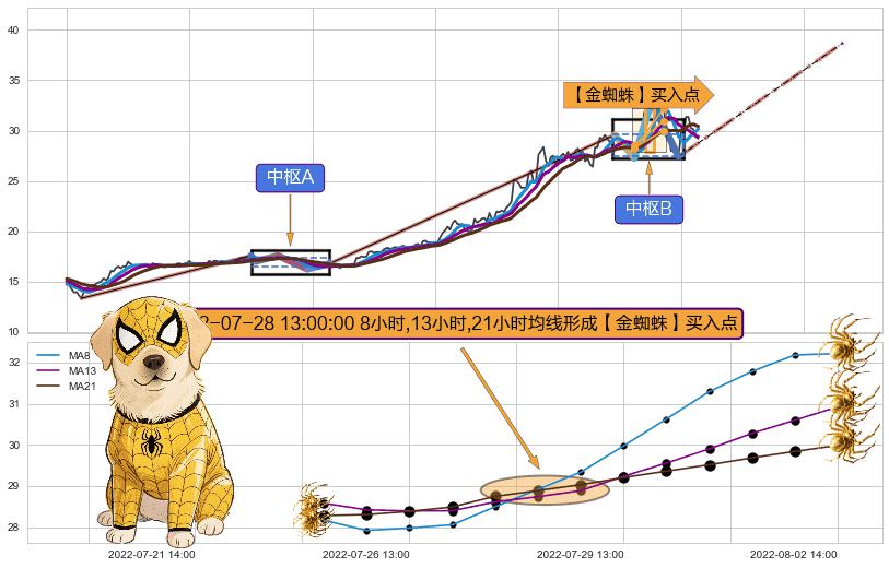 从2022-06-23 14:00至2022-07-25 13:00,共包含43个小时,阶段股价上涨6.16%,阶段股价变动位移路程比: 1 : 13