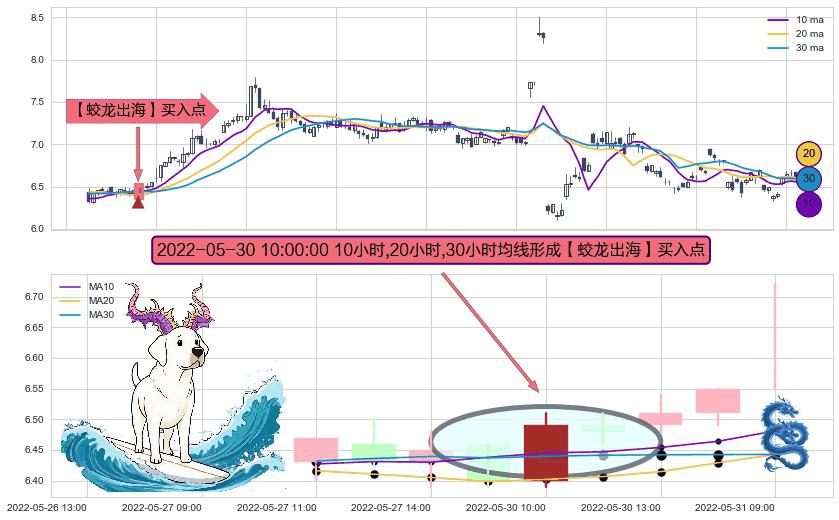 形态多维评估: ⚀ 2022-05-30 10:00:00小时显现 10小时-20小时-30小时均线 【蛟龙出海】买入点 看多信号,后市看涨,买入