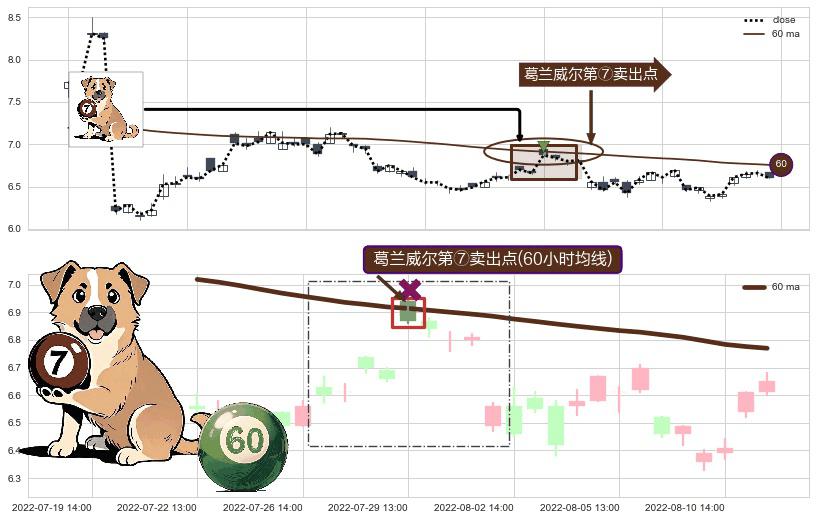 形态多维评估: ⚀ 2022-07-29 13:00:00-小时显现 葛兰威尔均线 60小时均线 第⑦卖出点 下降趋势的中继信号,后市看跌,卖出信号