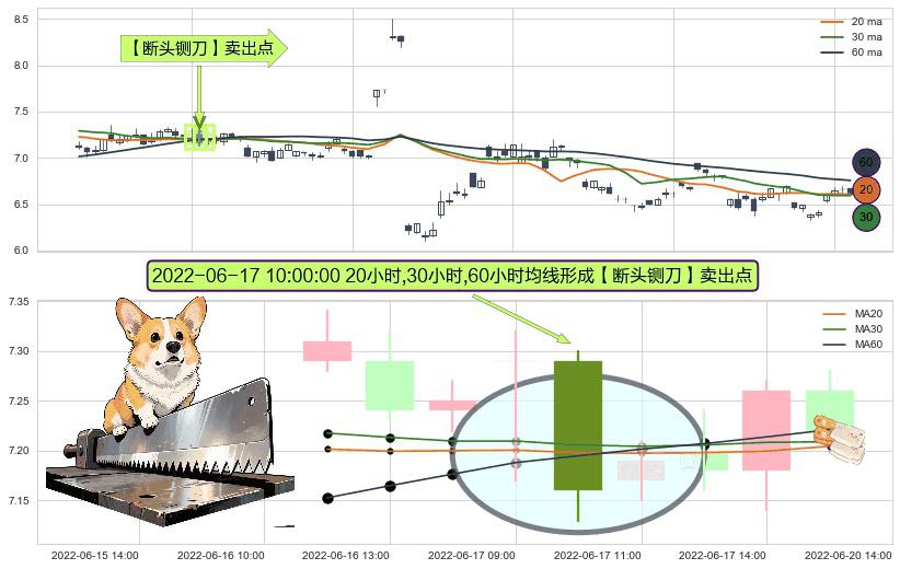 形态多维评估: ⚀ 2022-06-17 10:00:00小时显现 20小时-30小时-60小时均线 【断头铡刀】卖出点 看空信号,后市看跌,卖出