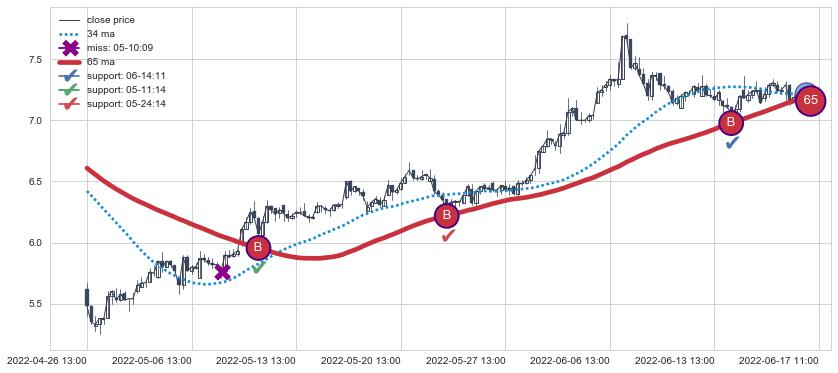 上涨趋势04-26 13:00-06-17 11:00,均线65确认关键支撑3处