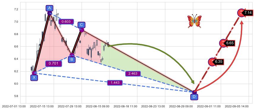 ➣ 未完成【蝴蝶】形态起点X: 07-06:13, 已到达C点: 07-29:13, 预测最终D点: 08-29:10, 共111交易小时