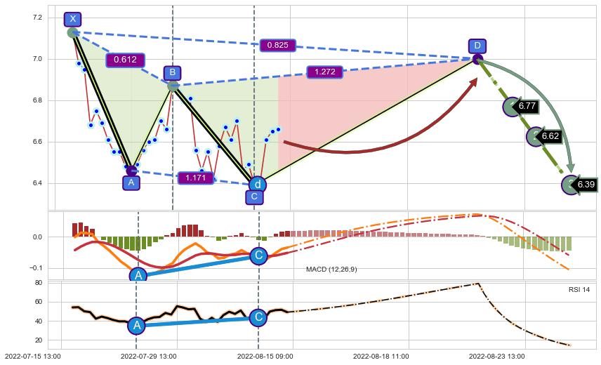 ➣ 未完成【赛福】形态起点X: 07-18:14, 已到达C点: 08-10:13, 预测最终D点: 08-22:11, 共69交易小时