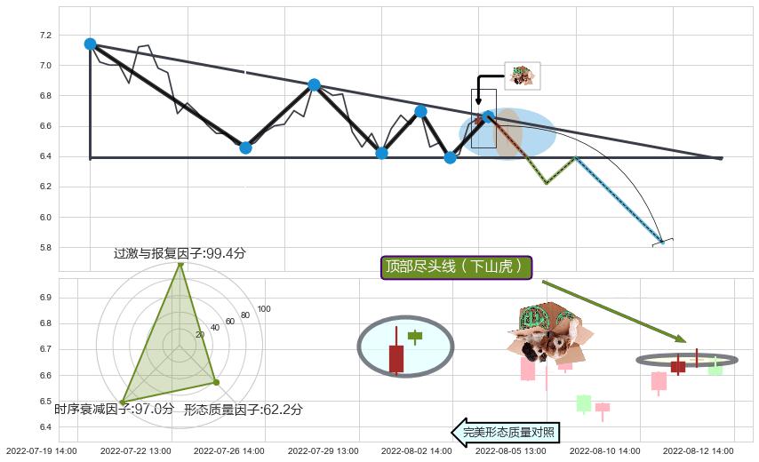 ♘ 阻力价格位7.03,可信任强度82.25%,距离最后交易2022-08-12 14:00形成的收盘价格6.60相差 +6.54%