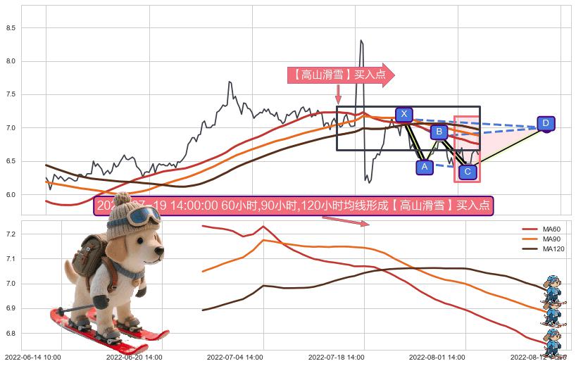 ➣ D点拟合预测价格7.00,距离最后交易收盘价格6.60相差 +6.07%