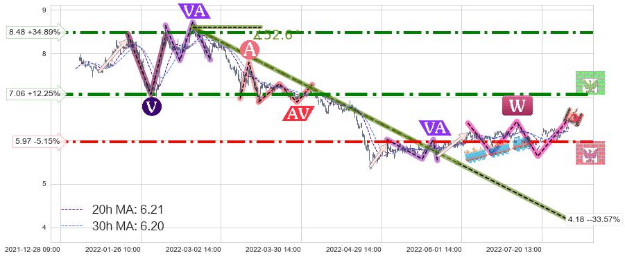 ♘ 阻力价格位7.06,可信任强度92.44%,距离最后交易2022-08-12 14:00形成的收盘价格6.29相差 +12.25%