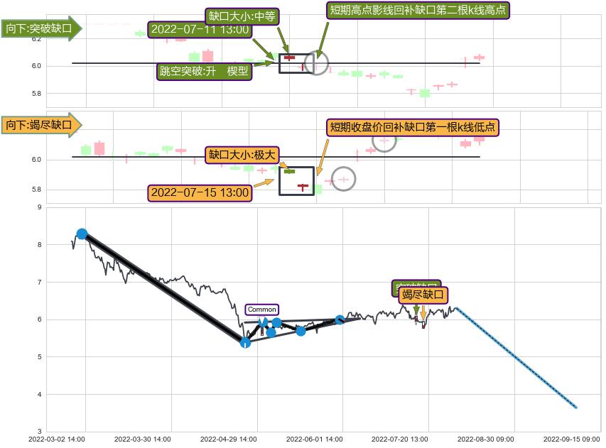 ➢ 2022-07-15 13:00形成:向下跳空【竭尽】缺口