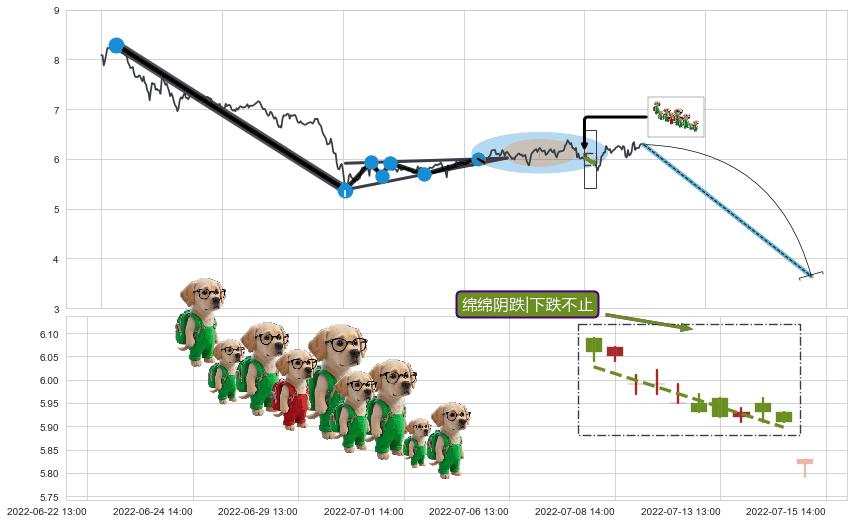 | 7 🅚:绵绵阴跌|下跌不止 ➕ ☯️:缠论中枢点下降缠中枢B破位后距离1买距离较远,随后猜想后续持续下跌(趋势跟踪) ☞ 看空信号 ⇥ 【🅚线】交织【图形】⇥ 综合量化分数: 48 | > |