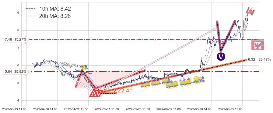 ♘ 支撑价格位7.46,可信任强度40.70%,距离最后交易2022-08-12 14:00形成的收盘价格8.80相差 -15.27%