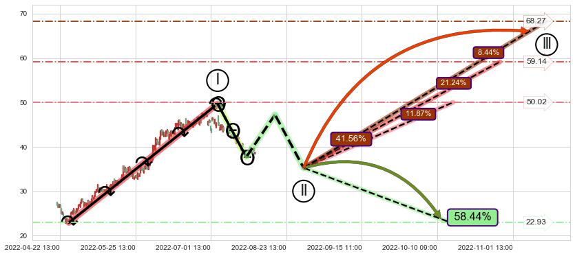 ♘ 支撑价格位22.93,可信任强度56.25%,距离最后交易2022-08-12 14:00形成的收盘价格38.54相差 -40.50%