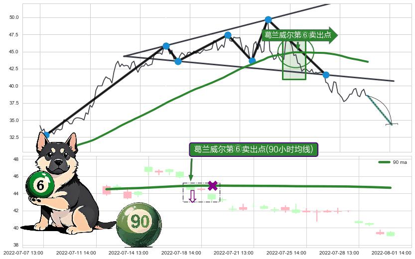 | 2 🅚:【死亡谷】卖出点 ➕ 📐:扩散三角反转下行突破支撑位破位, 猜想持续下沉下跌,被突破的支撑位已变为阻力位 ☞ 看空信号 ⇥ 【均线】交织【图形】⇥ 综合量化分数: 47 | > |