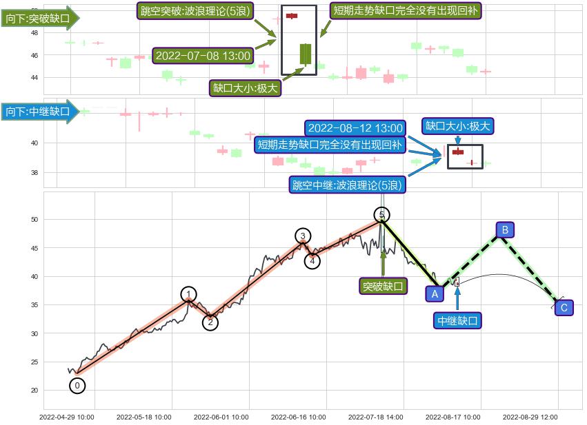 ➢ 2022-08-12 13:00形成:向下跳空【中继】缺口