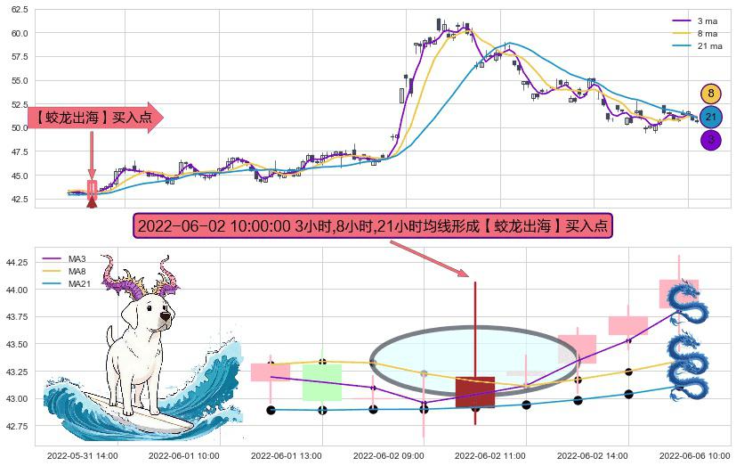 ⚀ 2022-06-02 10:00:00小时显现 3小时-8小时-21小时均线 【蛟龙出海】买入点 看多信号,后市看涨,买入